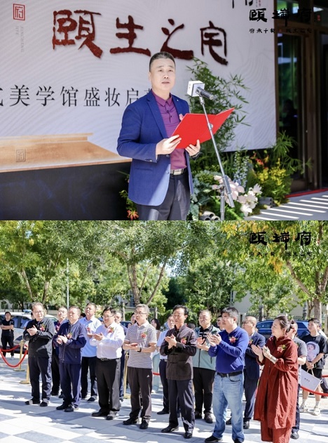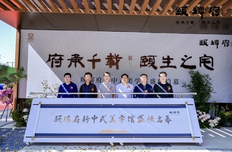 主持人邀請領導們共同上臺剪彩之時,卷軸徐徐展開,標志著頤瑞府新中式美學館正式亮相,全場氣氛達到高潮。至此,一場文化、藝術與匠心的盛會,正式啟幕!