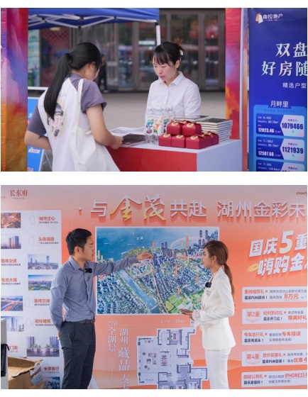 本次生活節重點介紹了南太湖未來城的整體規劃、目前建設進度以及重點優質房企項目。在活動現場,各個展位前聚集了眾多前來咨詢項目戶型、購房政策等內容的市民,可以感受到湖州人民對長東片區整體建設及房產板塊的關注。置業顧問們也熱情地接待每一位前來咨詢的市民,詳細地介紹樓盤相關信息,準備了各種咨詢好禮及購房優惠,為購房者帶來真金白銀的實惠。