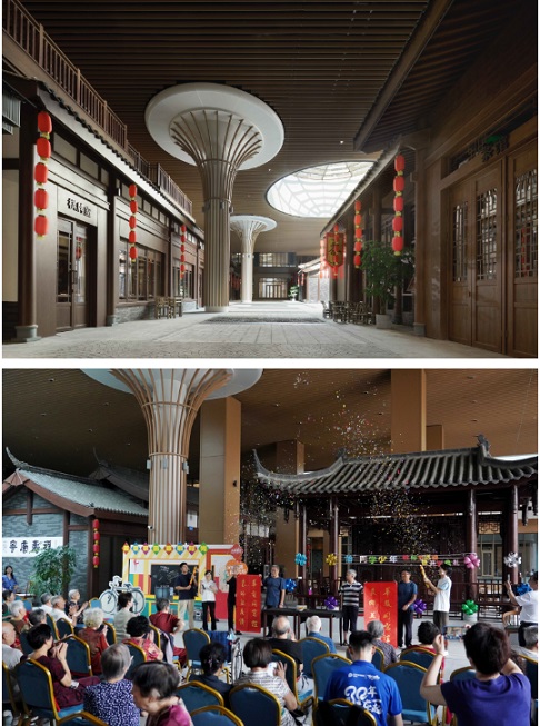 成都社區坐落于成都溫江,以國際CCRC養老社區理念為指導,將成都蜀地文化融入建筑設計,植被覆蓋率高達70%。不同于傳統的居家養老和機構養老,成都社區占地面積寬廣,除起居樓、醫護中心外,還配備包括棋牌室、圖書室、乒乓球室、影音室等場地在內的多個功能區域與娛樂活動區域。成都社區每周安排有國畫、書法、手工聲樂等豐富的太學課程,同時也鼓勵入住居民創建自己的興趣社團,組織太學社活動,打造獨屬于社區的太學體系。