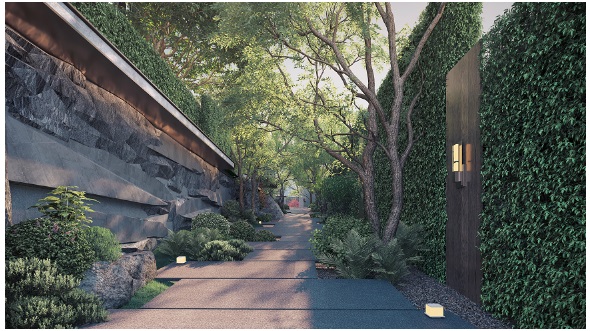 你再仔細(xì)看「微地形」的營造,設(shè)計(jì)師打造了數(shù)個(gè)曲徑通幽的園林小景,有識(shí)別度更有獨(dú)特的意境。