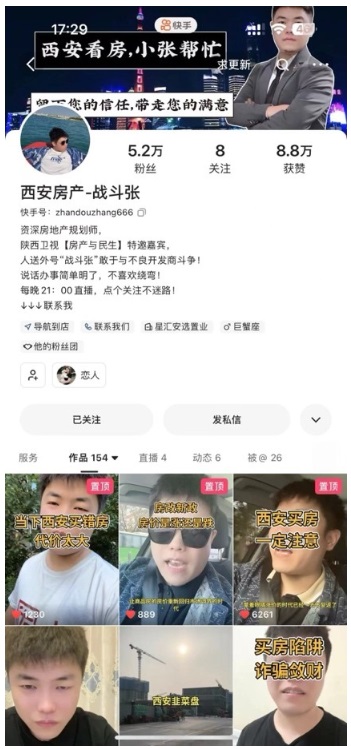 成為快手房產主播已有5個年頭的“西安房產-戰斗張”張勃(快手ID:514029501)深諳其道,從內容創作、賬號運營到粉絲維護,張勃始終將信任的構建放在首位,以用戶需求為先,讓快手成為了他以專業內容和高強粉絲粘性拉動房產交易的陣地。