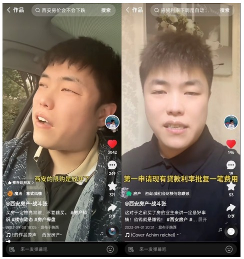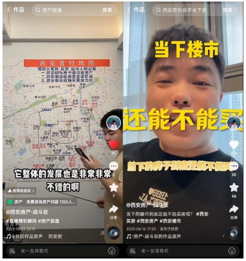 帶著這一理念,在賬號的內容創作上,張勃將“塑造人設IP、沉淀信任私域”放在首位,并淡化房產業務交易的目的性。在短視頻作品中,張勃以口播內容為主,聚焦房產政策方向、西安房產市場的發展走向、購房者選房購房需要關注的因素等干貨知識。