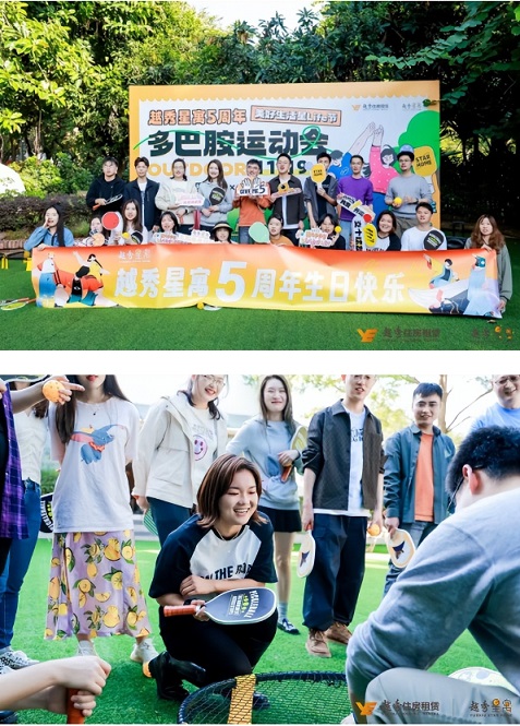 一場盛大五周年多巴胺運動會在廣州玫瑰園餐廳舉行,越秀星寓鼓勵年輕人在工作之余走出家門,享受運動帶來的快樂,感受生活的美好。踏著初冬的氣息,伴著和煦的陽光,笑聲、歡呼聲、吶喊聲在此刻融為一體,身體里不斷迸發分泌著多巴胺,將所有的煩惱與壓力都被拋之腦后。結束了酣暢淋漓的趣味運動挑戰,租戶們又來一場輕松愜意的草地露營,一邊享受著多巴胺美食,一邊伴隨著輕松的音樂與愉悅的氛圍,租戶們相互聊起感興趣的話題,同頻共振,邂逅靈魂摯友;顒幼詈,越秀星寓與星友租戶們有愛開啟越秀星寓五周歲生日趴,租戶們一起為越秀星寓送上真摯歡樂的生日祝福。
