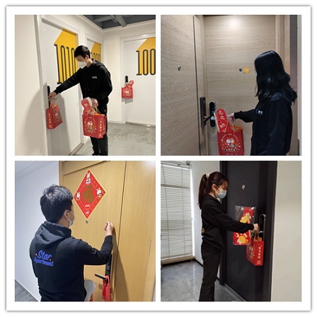 完成福袋打包后,門店管家把這份用心的春節(jié)驚喜一一為租客派送到家!租客們可以開心地吃著新年糖果零食,貼上新春對(duì)聯(lián),異鄉(xiāng)的春節(jié)也充滿儀式感。