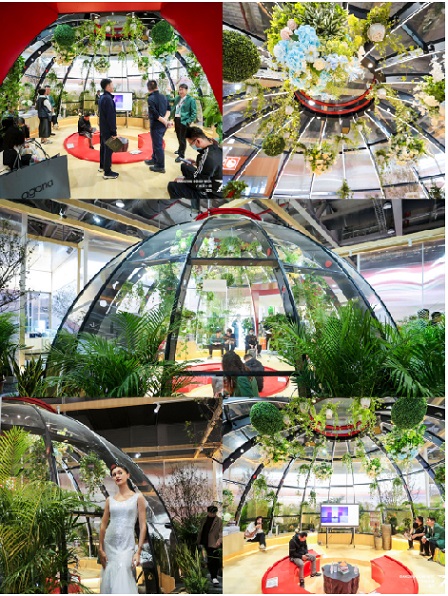 葉陽“向陽心生”展館內(nèi)光影浮動,轉(zhuǎn)折變化,草木葳蕤,處處見景,游走間恍然有林蔭參差、時空轉(zhuǎn)換之美。通過游園式的空間動線對產(chǎn)品進行間隔,在其中信步盤桓,游目騁懷,漸入古典意象,表達親近自然的生活意趣和禮樂并行的人生追求。吸引國內(nèi)、國際觀展者的高頻駐足、打卡,獲得眾多設(shè)計師大咖的高度青睞。