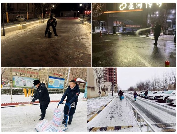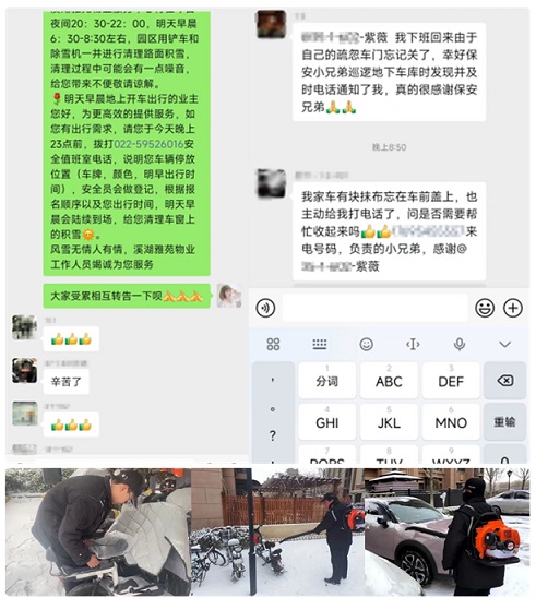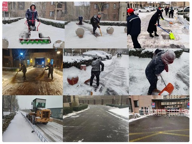 面對斷崖降溫、大風暴雪等極端天氣,路面除雪、設施防護、水電暖設備檢修……天津星河智善生活物業服務團隊全力做好各項保障。在這個寒冷的暴雪天氣,他們的熱情服務和責任擔當,就像一股股暖流,融化了積雪,也融化了業主的心。