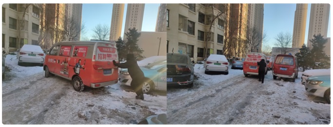 持續降雪,路面結冰,很多業主的汽車無法發動或者打滑,濱瑞花園項目安全員挺身而出,在易結冰路段駐守,化身“推車俠”,幫助一輛又一輛車順利啟動。“幾個小時下來手臂酸痛,也摔倒過,但是車能動了,我心里高興。”