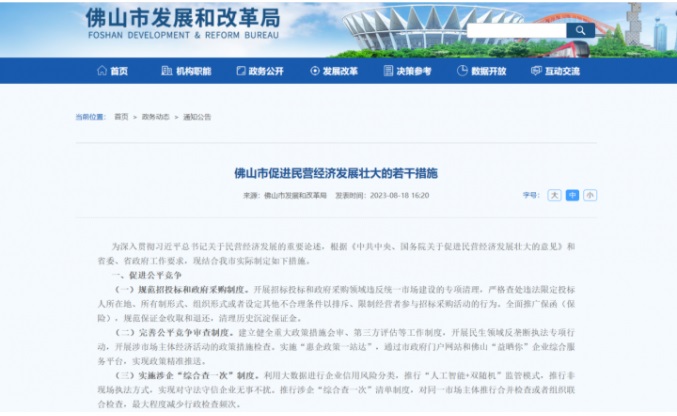 當下,《佛山市促進民營經濟發展壯大的若干措施》也已正式印發,從5大方面提出26條“實招”優化民營經濟發展環境,支持民營經濟做大做優做強。