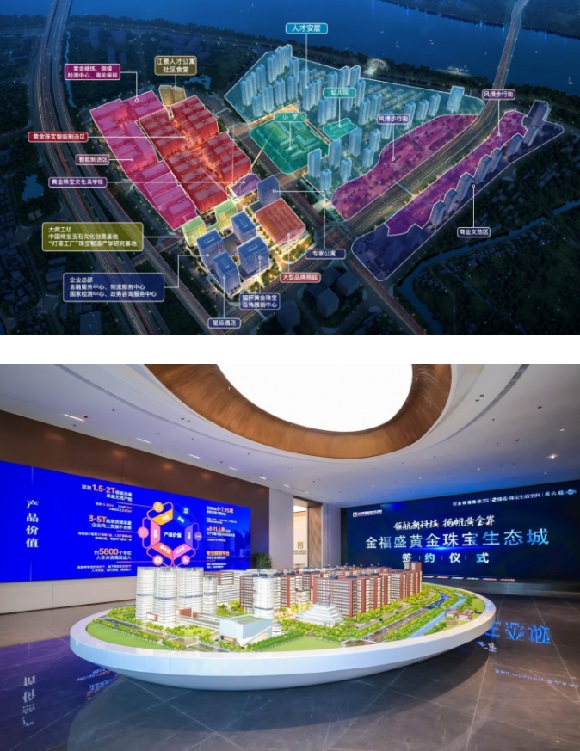 金福盛總投資約300億元,規劃用地面積約1600畝,總建筑面積約265萬㎡,在佛山倫教建造以“黃金珠寶+智能制造+數字經濟”三核為驅動,致力于發展成為智能制造、高端裝備智造、創意設計、珠寶展銷、品牌發布、商務會展、產業孵化、創新金融服務、新零售電商、文旅休閑等全產業鏈功能為一體的產城融合人文城市標桿,實現產業鏈數字化運營和智能制造的高質量發展。