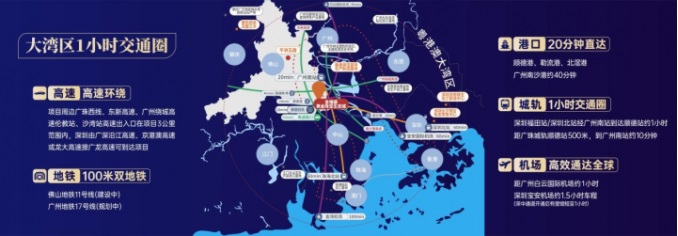 金福盛位于灣區極點城市——佛山順德的“北門戶”,與番禺、南沙一橋之隔,海、陸、軌、空立體交通構筑高效產業脈絡,雙地鐵+一城軌+三高速,四通八達,高效暢聯灣區都會。
