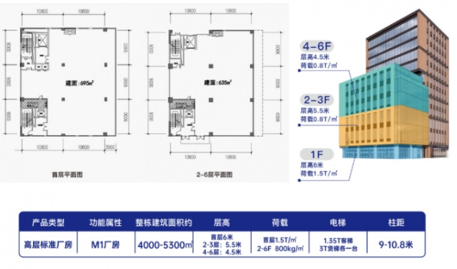 建面約4000-5300㎡類獨棟,50年獨立產權,層高4.5—5.5—6米, 高標廠房滿足生產需求,貨梯、客梯雙配置,客貨分流,安全高效輸送,以“有天有地”的獨棟廠房,筑就企業財富新名片。