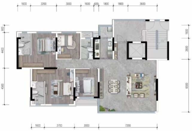 戶型能做到被成都媒體公認“最強戶型”,邦泰將約143㎡的戶型做成了三明衛的雙套房設計,2梯2戶,并且還配置了獨立生活陽臺,7.2m大橫廳,95%得房率,再加全名入戶花園,幾乎100%得房率,是目前成都市面上約143㎡做套四三衛設計的最強戶型,沒有“之一”。