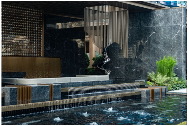 配置上,邦泰·天府云璟從工區到細節堅持做到“超配”品質。酒店精奢風小區大門,約7.5米高,近80米寬,星空穹頂配以頂面以香檳金穿孔鋁板,充滿高級感;外立面采用超大面積LOW-E玻璃,全景封窗交付,戶內仍按照半面積計算。入戶雙首層入戶大堂,星空頂、奢石、大面玻璃,質感耗材全上;小區除兩棟洋房外,區域樓棟首層全4.5米架空泛會所,再配備邦泰拿手的3萬平方米園林藝術打造,整體項目的觀感和體驗感幾乎做到無可挑剔。
