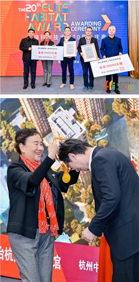 在大會最后進行了第20屆精瑞科學技術獎頒獎典禮,共頒發97項大獎,其中“佛山保利秀臺天珺”與“洞頭半屏島韭菜岙村旅融合項目暨半屏山景區游客集散中心”榮獲金獎。