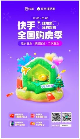 不久前,快手理想家剛發起跨城聯賣冬季購房節,已經落地“大連-西雙版納州跨城聯賣”、 “鞍山-珠海跨城聯賣”兩場活動,這意味著基于直播短視頻平臺的跨城聯賣新模式成型。而此次全國購房季正是跨城聯賣冬季購房節的升級,快手理想家希望以更多的福利資源補貼,滿足平臺用戶差異化購房需求,讓用戶更簡單方便實現異地安家。
