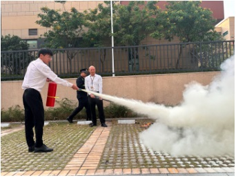 面臨火災,掌握滅火技能是要點。在風水隆智慧服務消防演練的現場,亦是把模擬滅火作為重點項目。