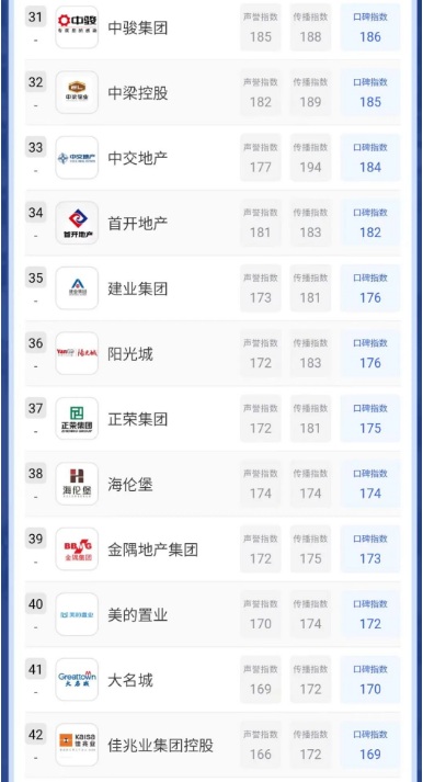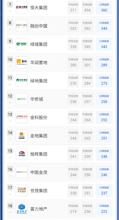 本期榜單為2022中國房地產品牌線上口碑指數年度排行榜。