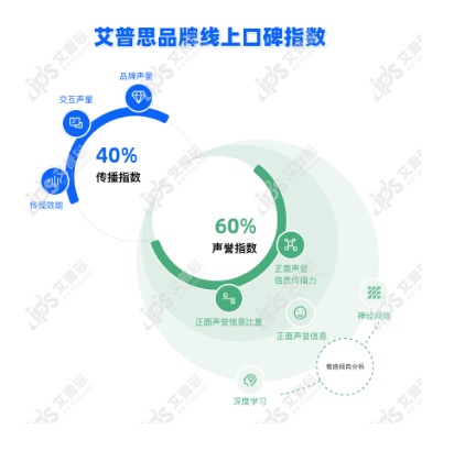 指數構建與計算方法 “艾普思品牌線上口碑指數”為艾普思咨詢原創指數,其評價體系綜合考察了品牌的線上傳播力及聲譽表現,包含傳播指數和聲譽指數兩個子指數,計分權重分別為40%、60%。其中,“傳播指數”以品牌聲量及點贊、轉發、評論等交互聲量數據為統計基礎,同時充分考慮了不同媒介、站點、稿源/作者等對信息傳播效能的影響,由多個一級和二級指標系數加權計算得出。“聲譽指數”則通過神經網絡和深度學習對信息的情感傾向加以分析,以評估正面聲譽信息的比重及傳播力。