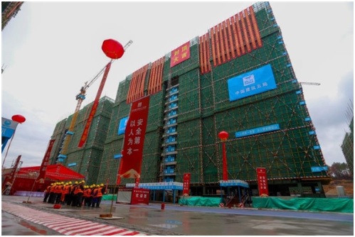 在建設過程中,項目施工單位中國建筑第五工程局克服高溫、風雨、大風等一系列的不利因素,力求做到工程質量精品,進度計劃節點準時跟進,以嚴要求、高標準完成各項施工任務,穩步推進主體結構全面封頂。