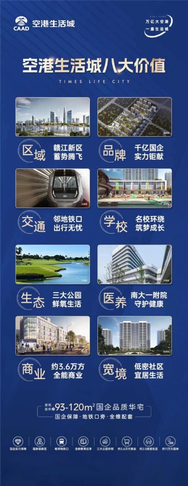 空港生活城是大型國有企業首都機場集團有限公司旗下,全資子公司首都臨空發展集團有限公司與江西機場集團有限公司,聯袂打造的臨空人居標桿。憑借國企護航,空港生活城在保證工程進度的同時,保障工程質量,以品質交付,詮釋美好初心。