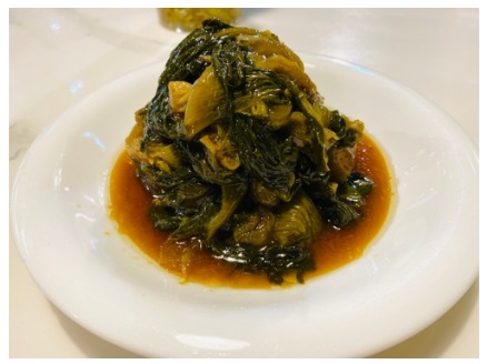 烤菜年糕是寧波的特色傳統(tǒng)美食,烤菜不是烤制而成,通俗點來說就是青菜紅燒,這個燒法不知道是不是只有我們寧波人這么吃?這個菜的靈魂在于糖多一點,大頭菜煸炒后加上糖和醬油的調(diào)味,最后淋點芝麻油,濃稠的醬汁帶著烤菜的香氣,口感像腌菜,又隱隱透著甜味,總之特別好吃。