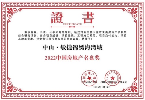 日前,在由中國房地產報聯合中國城市與區域治理研究院、中國住交會舉辦的“2023中國房地產年度趨勢論壇暨CIHAF 2022第二十三屆中國住交會”上,敏捷集團旗下大盤——中山·敏捷錦繡海灣城憑借卓越的產品力、交付力在此次評選中脫穎而出,榮獲“2022中國房地產名盤獎”,再一次展現了行業對敏捷集團不斷升級夯實產品硬實力、持續提升品質服務的高度肯定。