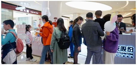 作為石岐總部經濟區唯一國企項目,自拿地起就備受關注。隨著城市展廳正式開放,早已等候多時的賓客迫不及待地涌入參觀。開放單日累計超200組客戶來訪,接待人數超500人,場面極為火爆。眾人圍觀在兌換禮品處,參與并見證著各式精美好禮的送出。