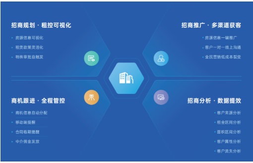 招商租賃是開放型產(chǎn)業(yè)園的“錢袋子”工程,除了產(chǎn)品品質(zhì)本身以為,如何在激烈的市場(chǎng)競(jìng)爭(zhēng),和租戶主導(dǎo)的商辦租賃市場(chǎng)中贏得先機(jī),借助數(shù)字化能力實(shí)現(xiàn)招商全流程、精細(xì)化管理,是當(dāng)前提升招商去化效率的有效手段。