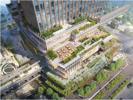 將綠色、可持續發展融入日常辦公環境也是K11 ATELIER的特色,深圳前海K11 ATELIER 致力于構建大灣區綠色金融中心,在5樓專設空中花園,打造富有層次的綠化空間,并配套有休息座椅等,不僅為入駐企業提供休憩載體,更滿足會客、團建、表演等多形式企業活動需求。同時,在項目的樓層中錯落地穿插著露臺花園,將自然和生態引入建筑內,使建筑“會呼吸”。