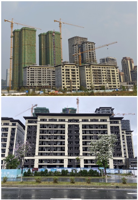 據項目負責人介紹,韶關世茂雅宸項目一期所有樓棟全部封頂完成,其中首、二批次交付的6#、7#、8#、9#、10#樓全部砌筑、內外墻抹灰、窗框安裝、給排水管網等工程均已完成,外立面涂料正大面積施工中,其余5#、3#樓砌筑已完成90%,內墻抹灰已完成86%,整體施工進度按計劃進行中。