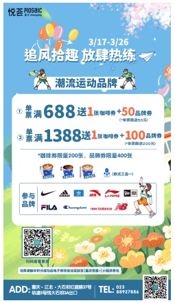 除了豐富的現場活動,重慶悅薈在福利上也下足了功夫,除了每月豐富的積分換禮、生日禮等會員活動外,還有“追風拾趣·放肆熱練”為主題的運動品牌折扣禮,單票滿688即送1張咖啡券+50元品牌券;單票滿1388送1張咖啡券+1000元品牌券,更有阿迪達斯、NIKE、ANTA、LI-NING...等一眾大牌參與,為在打卡碳水市集后的消費者創造另一嗨點。極大滿足了消費者的體驗感。