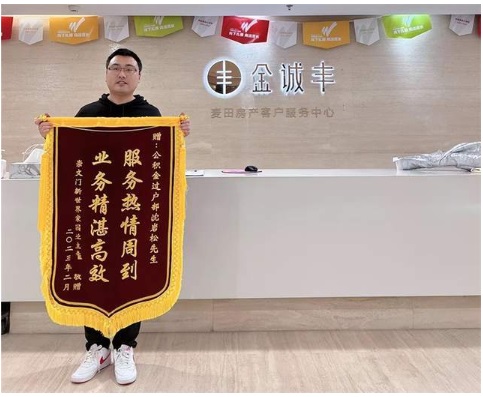 2023新年伊始,麥田房產(chǎn)公積金專家沈巖松收到了一面來自崇文門新世界家園的業(yè)主李先生致謝的錦旗,“服務(wù)熱情周到,業(yè)務(wù)精湛高效”,代表李先生的感激之情,也是肺腑之言。