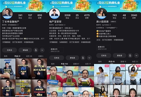 這一系列操作,也加快了地產傳統營銷方式在短視頻直播平臺上的發展,讓更多傳統的房產經紀人紛紛轉行成為了專業房產主播。