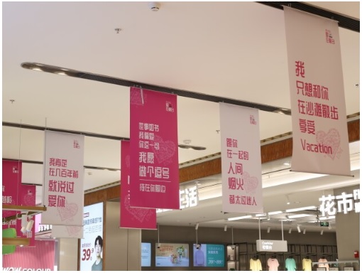 浪漫五月,520活動期間,悅薈策劃了“不止今夕·愛在朝夕LOVE宣言展”活動,場內連廊掛滿“愛的宣言”,每一句都是愛的告白,吸引了眾多消費者駐足打卡圍觀。更有巨型鮮花美陳浪漫來襲,為愛打造獨家浪漫,氛圍感拉滿,加上告白電子投屏,一秒出片。