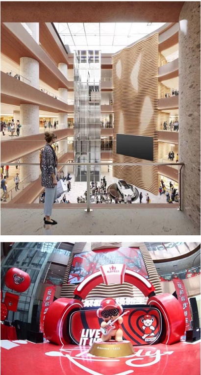 硬件改造方面,項目聘請日本著名PINHOLE商業公司做建筑改造設計,將前期百貨與購物中心連為一體,改變整體動線,優化樓體結構,中庭全面煥新。改造后動線循環無死角,單層環形動線通暢,而超大尺度挑空,既提升了空間開放感,營造空間立體性,又給消費者帶來直接的感官感受。