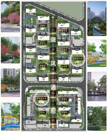 一條軸線,不僅連接四季層疊的風(fēng)景,更是全家人的樂園。項(xiàng)目打造約385米長、30米寬的中央景觀軸線,在此之上營造“山、谷、溪、林、云、澗”六重景觀,層層遞進(jìn)。儀式感在此沒有結(jié)束,而是正式將你引入生活的氛圍中。