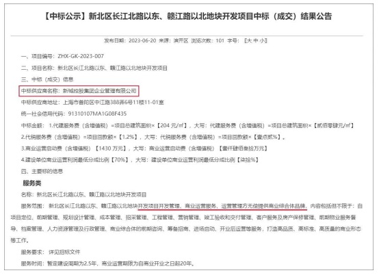 新城地產(chǎn)中標(biāo)新北春江街道的春江醫(yī)院南地塊,負(fù)責(zé)長江北路以東、贛江路以北地塊開發(fā)項(xiàng)目開發(fā)管理、商業(yè)運(yùn)營服務(wù)、運(yùn)營管理方無償提供商業(yè)綜合體品牌等。