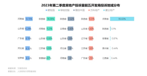 圖13:2023年第二季度房地產投訴量前五開發商投訴地域分布