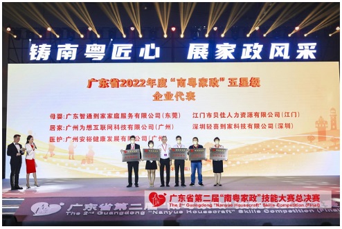圖為輕喜到家榮獲廣東省“南粵家政”五星級企業現場授牌