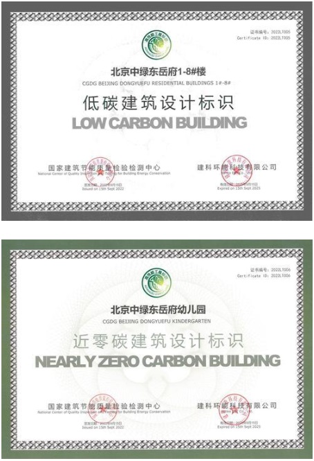 (中綠東岳府所有樓棟均通過低碳建筑檢測認證)