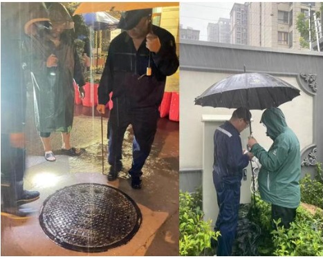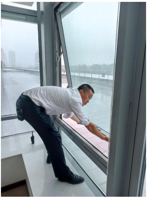 工程人員全面排查樓頂窗戶關閉情況,預防室內進水,竭盡全力做好汛期的各項工作。