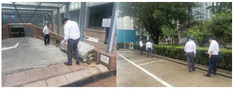雨過天晴后,物業人員在巡視項目的設備設施。