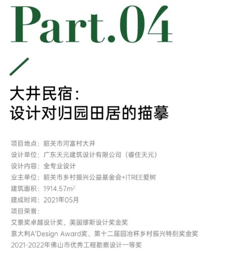 在快速城市化的進程中,中國的一些鄉村產生了走向衰落的趨勢。新農村需要改變,需要復蘇,需要重新吸引人們回歸,環境的改變是關鍵的因素。2018年6月,韶關市鄉村振興公益基金會為推動當地鄉村振興,聯合了多方努力,決定在大井村打造以民宿產業為特點的美麗宜居鄉村和人居環境整治示范工程,以此帶活大井村經濟發展。