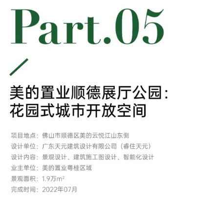 美的置業展廳及其附屬的公園作為城市公共空間的重要一環,是美的置業對外展示企業品牌的重要窗口之一,這個窗口一方面展示著美的置業多業態的經營實力以及智能化的核心產品內核,另一方面作為公共開放公園回饋城市,為城市居民提供了高質量的城市開放空間。