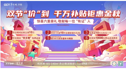 隨著中秋、國慶雙節來臨,濟南華僑城純水岸項目盛大開啟購房節,千萬補貼鉅惠金秋:節日期間定房可享受立減10萬、交1萬送10萬全屋家裝大禮包、免費送價值10萬元車位一個、搶10000元置業送消費券等多重福利,成交砸金蛋即有機會贏取價值398元的歡樂薈年卡兩張。
