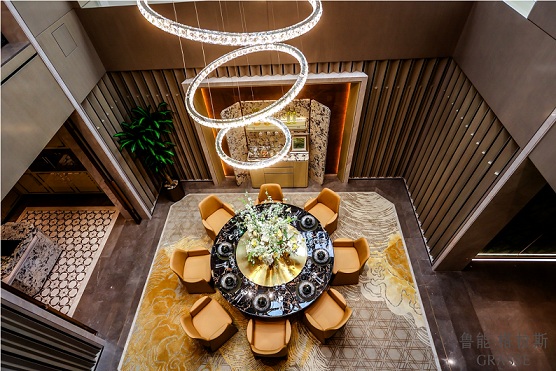 作為活動現場不可或缺的主角,此次盛裝開放的南合院樣板間以“故院秋色,盛啟東方”為主題,將背景獨特的皇城氣質與當下修心養性的藝術化生活方式相結合,構建具有當代符號的詩意棲居場所,無論是空間布局、色彩搭配還是裝飾元素的運用都恰到好處,彰顯著中式美學的魅力。南合院樣板間地處格拉斯墅區六期,為地上三層、地下二層的純正形態,兼具庭院花園與露臺空間,戶型面積達495平方米,尺度極為闊達,足以容納一家三代的生活場景。