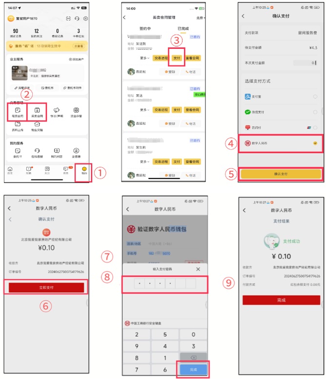 為了讓消費者順暢、安全、便捷的使用數字人民幣功能,我愛我家成立專項工作組,積極梳理業務流程與有資質的銀行洽談并開展技術對接。經過嚴謹的技術研發與測試及各部門的協同合作,目前我愛我家的核心經紀業務CBS系統以及相寓應用程序端,都已成功部署了數字人民幣支付功能,使得消費者在我愛我家的各類業務場景中,均能毫無障礙地使用數字人民幣進行交易。