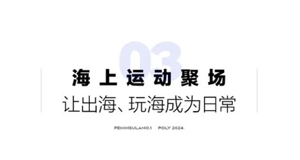 保利半島1號打造私家游艇碼頭,約161個游艇泊位,以停泊履跡世界的生活家的海上玩具。網紅派對艇、豪華游艇、沖浪艇、摩托艇、水上超跑等前沿的海上運動項目,隨時游艇出海體驗游艇碼頭至外海觀光、沖浪、海釣、派對的沉浸式玩海生活,成就萬寧新的『海上運動聚場』,讓世界向往的出海、玩海生活在這里成為日常。