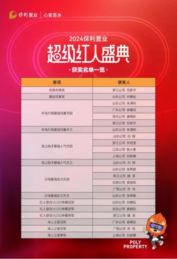 隨后紅人頒獎將「超級紅人盛典」氛圍推向了最高潮,全國20位超級紅人經過激烈的角逐,誕生了“創(chuàng)意先鋒、最佳花絮、最強流量天團、最強流量王、最強實力天團、最強實力王、最強人氣天團、最強人氣王、流量之星、海上之星”等十多項大獎,見證了保利置業(yè)創(chuàng)新營銷數字化建設的新成果以及紅人風采與高光時刻。