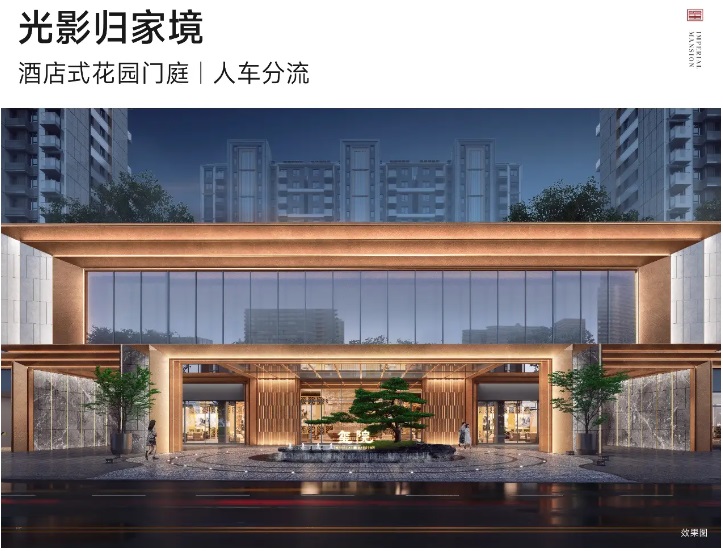 璽院建筑外立面對標(biāo)市場中10萬+的豪宅標(biāo)桿作品常用的玻璃幕墻+天然石材+鋁板的設(shè)計,以灰白青石為主色,同時搭配了淡金色的線條,玻璃幕墻不僅在生產(chǎn)和運輸過程中需要嚴(yán)格的質(zhì)量控制,而且安裝工藝復(fù)雜,需要高精度的加工和安裝技術(shù),且涉及高性能的安全設(shè)計,對安全性和抗風(fēng)壓性有著嚴(yán)格要求,為此璽院特地在南向配置了旭格系統(tǒng)窗,作為系統(tǒng)窗的“鼻祖”,防風(fēng)性能達國標(biāo)9級,保溫性能達國標(biāo)10級。山墻采用的全天然石材,在開采、運輸和加工過程同樣耗費巨大,因此其造價通常較為昂貴。如此精益求精的設(shè)計,方能打造出兼具東方審美與國際風(fēng)向的“天鏡云瀑”,實用耐用且外觀典雅,歷久彌新。從遠處望去,整個建筑散發(fā)出氣度不凡的東方神韻。